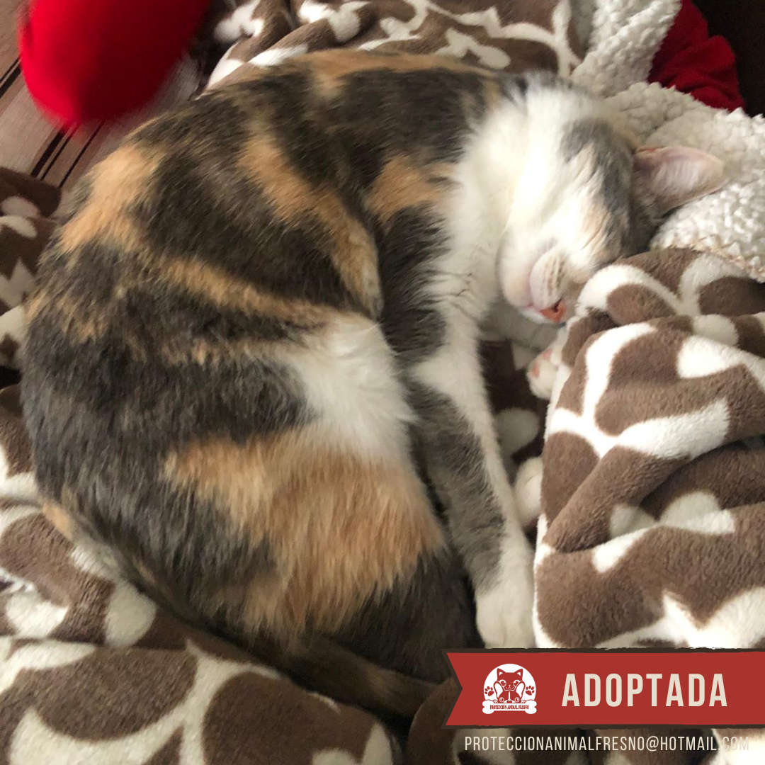 Maya nació en una casa, de eso estamos seguras por su carácter tan cariñoso e inocente, pero fue abandonada junto a sus dos bebés recién paridos en una colonia felina. En cuanto nos dimos cuenta de que había una nueva gatita muy asustada, que además se había refugiado junto a sus crías en unas alcantarillas cercanas a la colonia y a orillas de una carretera, rápidamente nos movilizamos. Capturamos a Maya para ser esterilizada y sus bebés. Durante su recuperación nos dimos cuenta de que Maya era demasiado sociable para sobrevivir en una colonia felina, necesitaba el calor de un hogar, así que decidimos buscarle una oportunidad. Sus bebés tuvieron suerte rápido y fueron adoptados conjuntamente, pero ella no tuvo tanta. Pasaron meses y meses en los que nuestra dulce Maya parecía invisible. ¡Hasta que un día su oportunidad apareció! Por fin alguien había visto en Maya todo lo que vimos nosotras en un principio: una gata guapísima, dulce y amorosa. Ahora Maya vive como una reina, despertando cada mañana sabiendo que es querida y cuidada.