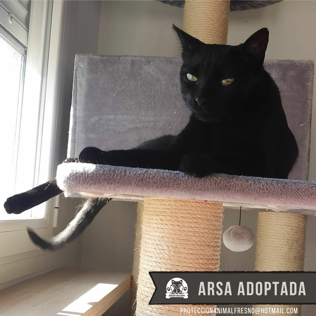 La ve rdad es que tenía mis dudas porque acabábamos de perder a nuestra querida Vivi (una panterita con leucemia)... Pero al final decidimos que adoptaríamos a dos panteritas más dado que nos dijeron que eran las que más tardaban en encontrar familia. Arsa y Petite son muy diferentes entre sí, pero se hicieron querer desde el primer momento tal y como son. Creo que adoptar a un gato (o dos o tres) te enseña a querer de verdad y a percibir el cariño de forma diferente. Nosotros estamos enamorados de la forma que tiene Petite de acompañarte durante el día y la forma que tiene Arsa de darte los buenos días. Todos son distintos y hace mucha ilusión empezar a conocer cómo son realmente y ver cómo ellos van considerándote parte de la familia. El procedimiento de adopción fue rápido y sencillo. Simplemente hay que querer lo mejor para el gato y no verlo como un juguete. Además me disteis muchas facilidades a pesar de residir lejos de la protectora. En cuanto a la adaptación de las panteritas: Arsa ya se adueñó de la casa nada más llegar y a Petite le costó un poco más porque es más tímida. Pero a ninguna le costó más de una semana. Me gustaría destacar que ellas eran gatas adultas cuando llegaron. Hay que darles una oportunidad y tener un poco de empatía para que jueguen felices por casa al poco tiempo.